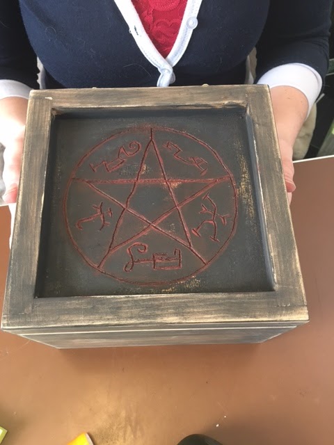 Another fandom I don't know much about is Supernatural. I know a ton of people that adore it and will eventually immerse myself in it, but right now I got to much on my plate. That doesn't stop me from baking a rad license plate cake for a friend. With the help of a carpenter friend I made her a Devil's trap box for her prop obsession too.