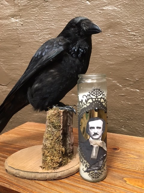 I also made a prayer candle for my E.A. Poe sanctuary. (and yes that is a real taxidermy Raven